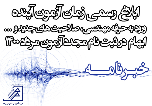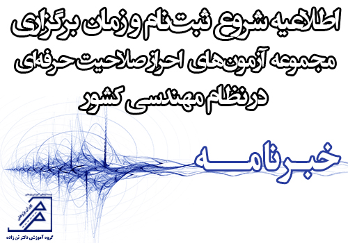 17 مه آزمون پایه 3 نظام مهندسی, برق, عمران, گروه آموزشی دکتر تن زاده, معماری, مکانیک, همه رشته ها ابلاغ رسمی زمان آزمون آینده ورود به حرفه مهندسی، صلاحیت های جدید و ابهام در ثبت نام مجدد آزمون مرداد 1400 می 17, 2021 توسط مدیریت 0 دیدگاه مجموعه آزمون های نظام مهندسی ساختمان از تاریخ ۱۳ تا ۱۵ مرداد ۱۴۰۰ برگزار خواهد شد مدیرکل دفتر مقررات ملی و کنترل ساختمان اعلام کرد: آزم... ادامه مطلب
